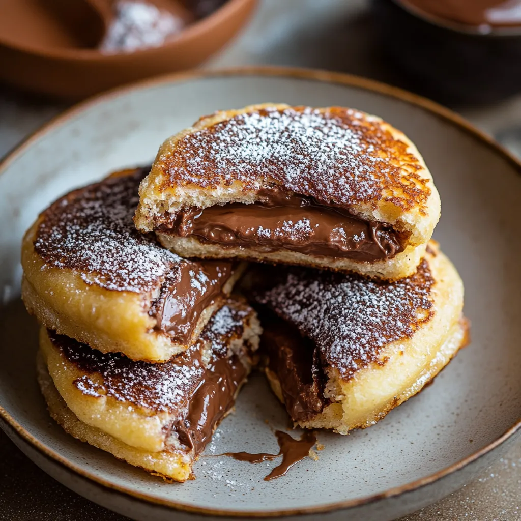 This mouthwatering fried Nutella pancake sandwich turns basic bread and hazelnut-chocolate spread into an indulgent treat that'll make your taste buds dance. The fluffy pancake coating creates a crispy, golden outside while the Nutella inside gets all warm and gooey.